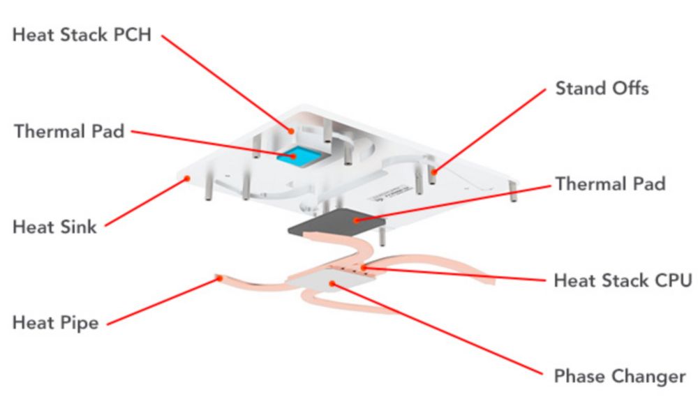 Hot spots, such as the CPU, are most efficiently cooled so they have more thermal headroom for high-performance operation for a longer time period, increasing system performance and efficiency.