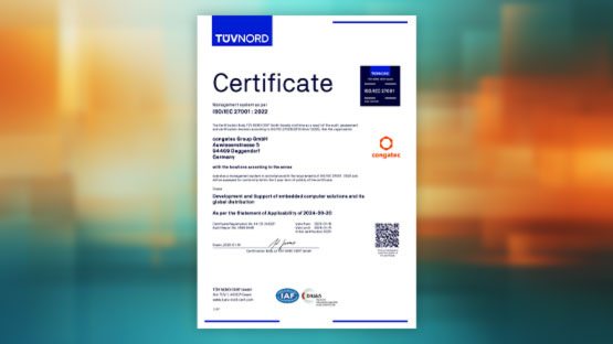 Information security is a top priority at congatec. That’s why we are proud to be ISO/IEC 27001 certified – the leading international standard for information security management systems (ISMS).